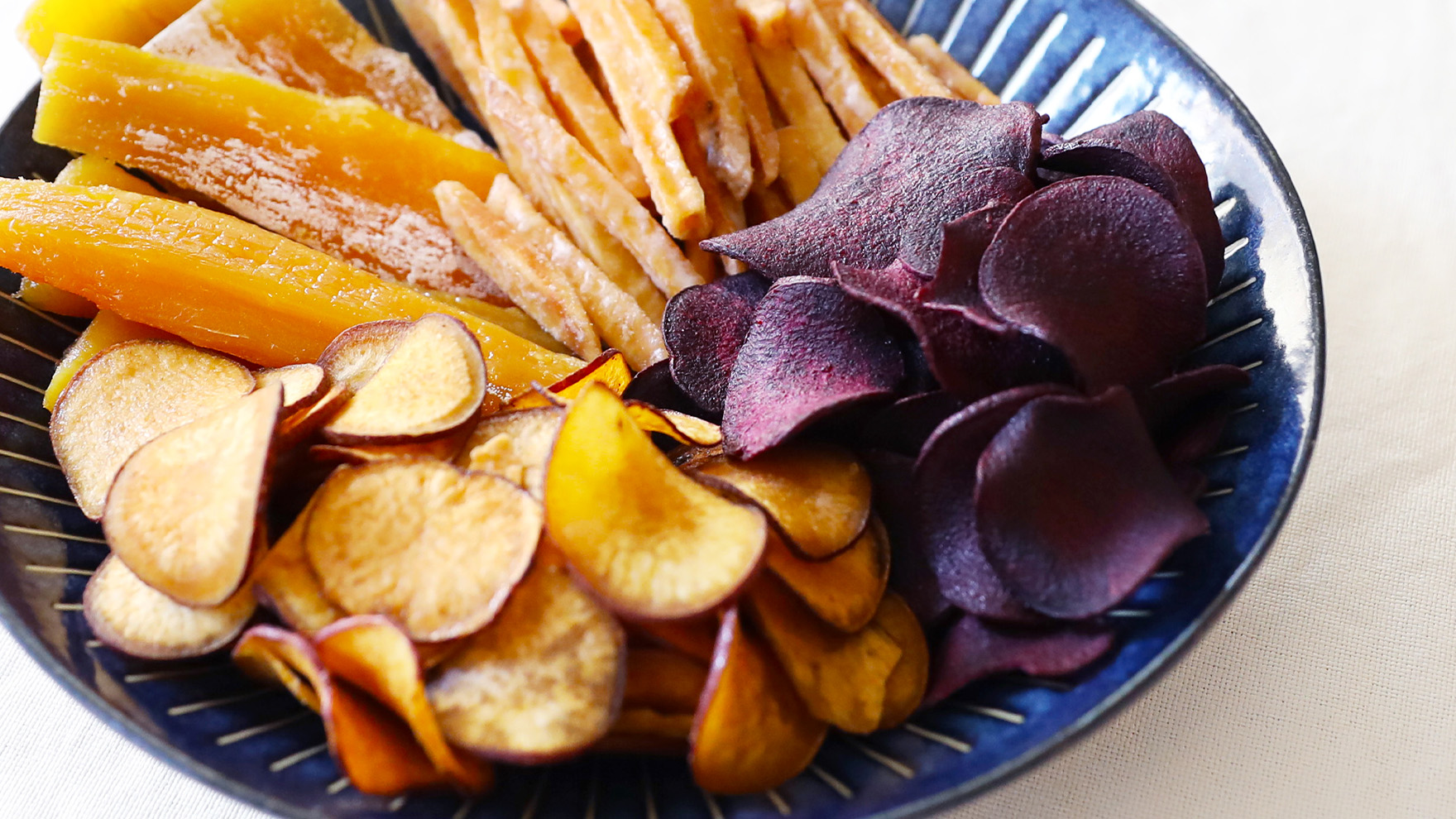 やきいもチップスはやきいも風味に味付した油で揚げた製品です。